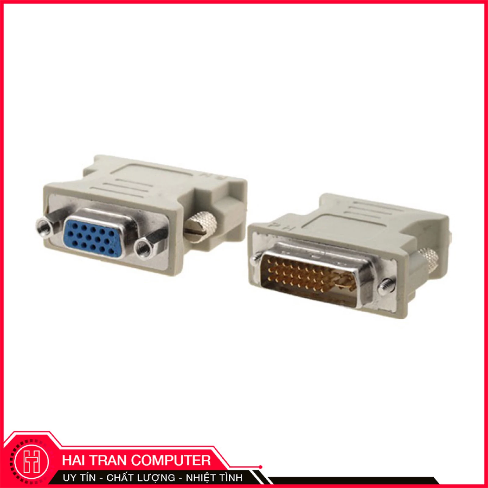 Chức năng - Dùng để chuyển đổi từ cổng DVI sang cổng VGA. DVI-I (Dual Link) 24+5pin Male ---> VGA (D-Sub) 15pin Female - Chất lượng hình ảnh rõ đẹp không bị nhiễu - DVI chuẩn dương sang VGA chuẩn âm cho LCD, CRT, HDTV, PC - Hỗ trợ cho màn hình LCD, HDTV, máy chiếu, DVD và các thiết bị giải trí gia đình khác - Kết nối VGA, màn hình SVGA để cắm DVI - Truyền dẫn tín hiệu chất lượng cao - Chân cắm DVI 24+5 mạ vàng cho chất lượng tín hiệu truyền cao Để tránh đặt nhầm sản phẩm, quý khách vui lòng xem kỹ cổng DVI của card màn hình